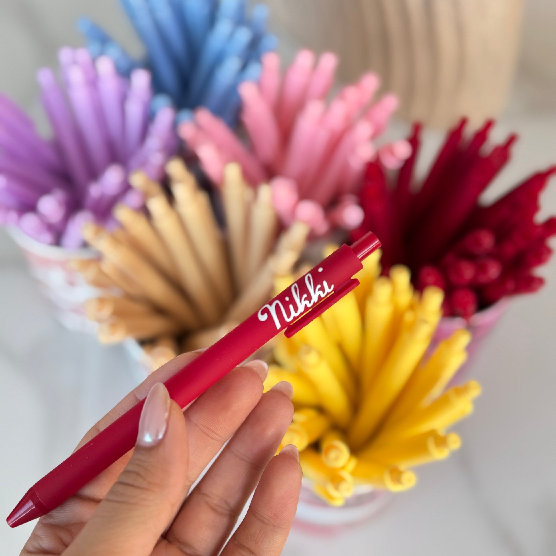 Our Personalized Pens are perfect for school, work, planners, journals, gift boxes, and teacher gifts. Available in a range of aesthetic colors, each pen is customized with your chosen name for that extra special touch.